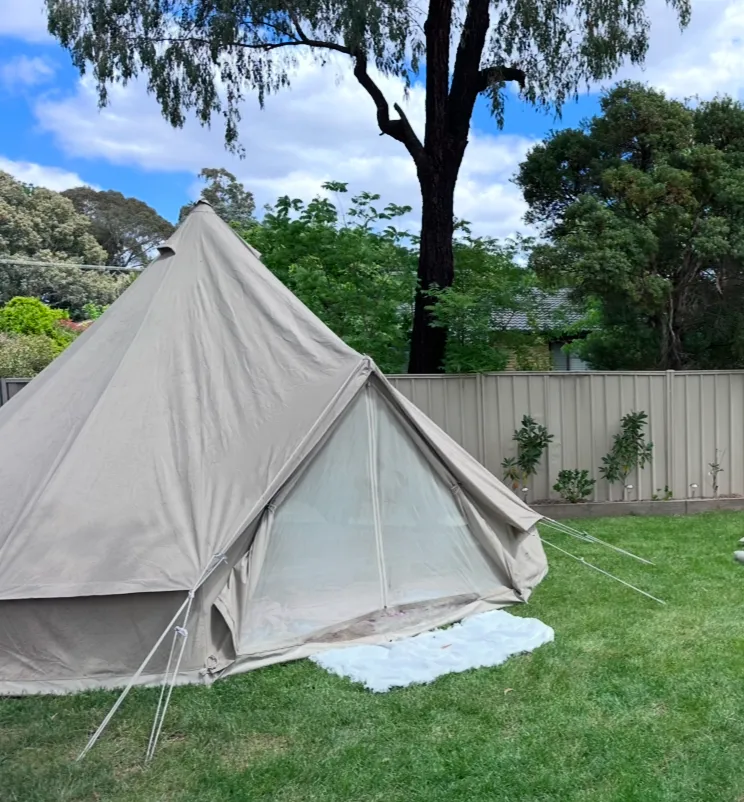 Escape to a world of luxury camping with our bell tents, perfect for everything from intimate backyard sleepouts to unforgettable getaways at a location of your choosing. Glamping (glamorous camping) brings the comfort of home to the great outdoors, combining the joy of nature with the indulgence of stylish accommodation.